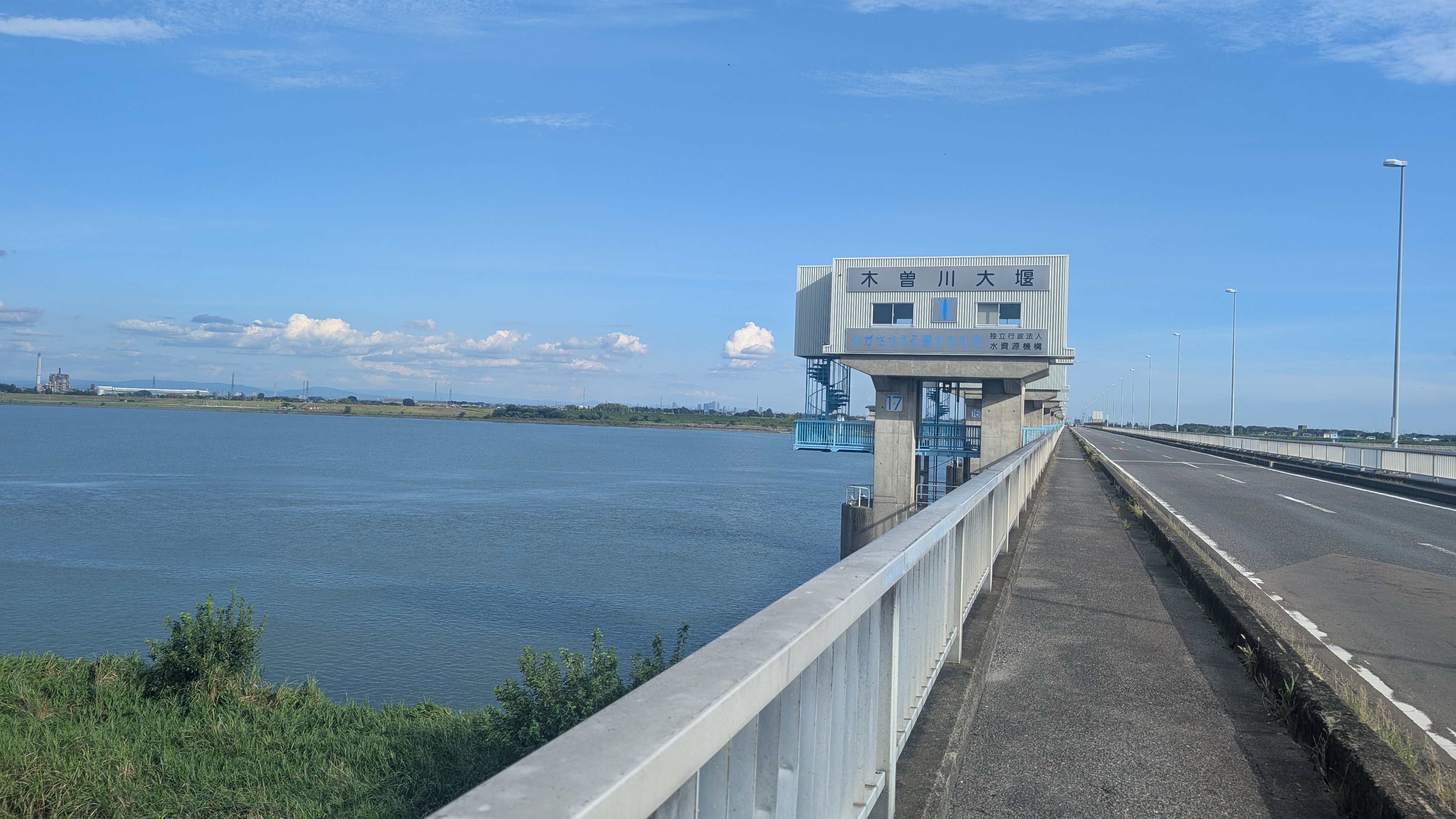 大垣は先月に大垣ひまわり畑に行ってきましたがその際は木曽川沿いの堤防の上を延々と走りました。でもあの道は狭いので、自転車で走ると後ろのトラックとかが私を抜けなくて迷惑がかかってしまうなあ、と思ってたところ、今回Ride with GPSでルートを作ったら清州→稲沢と抜けて濃尾大橋で木曽川を越える堤防を走らないルートが一発で出てきたのでそれを採用、GARMIN EDGEに送るのも(なんとか)成功して走り始めたのですが。