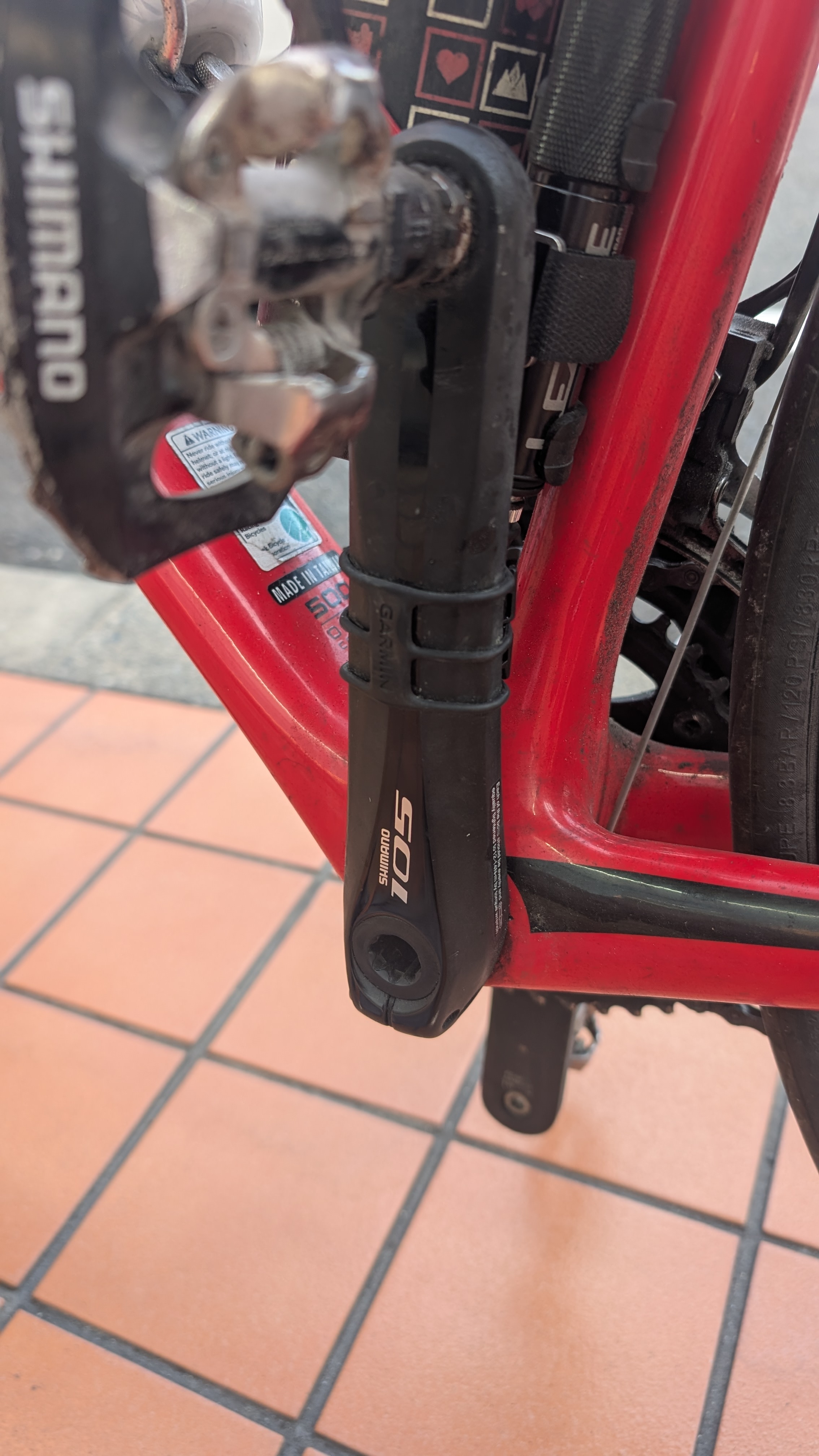 私はロードバイクにGARMIN EDGE 1040というサイクルコンピュータ(ナビとかついている)を付けていて、これは単体でもGPSで位置がわかるのでスピードメーターとして使えなくはないのですが、これを持っているたいていの人は別売りのスピードセンサーとケイデンスセンサーを付けていると思います。スピードセンサーはタイヤの回転数でGPSだけよりはずっとちゃんとした速度を出してくれますし、ケイデンスセンサーはクランク(ペダル)を回した回数を数えてくれます。ロードバイクでは、ペダルを踏む力と回転数を一定にして、坂道とかがあれば細かくギアを変えて対応するのがいいらしい。私は全然実践できていませんが。もうちょっとお金をかけるとパワーメーターというのを付けて「ペダルを踏む力」を計測することもできますが私はそこまでは必要性を感じてません(ケイデンスすら一定にできていないわけですし)。