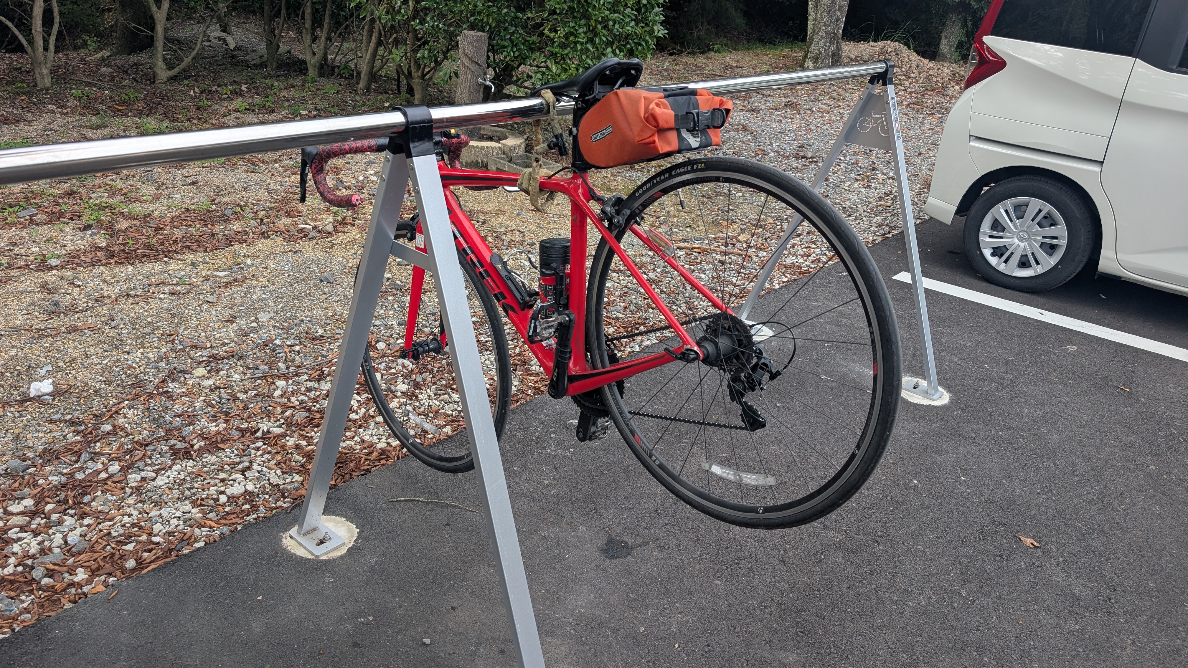 6/23の記事で「バイクスタンドは撤去されたままなのね……」と書いてしまいましたが、どうもあったようです。6/23から今に至るまでに設置されたわけではないよね?