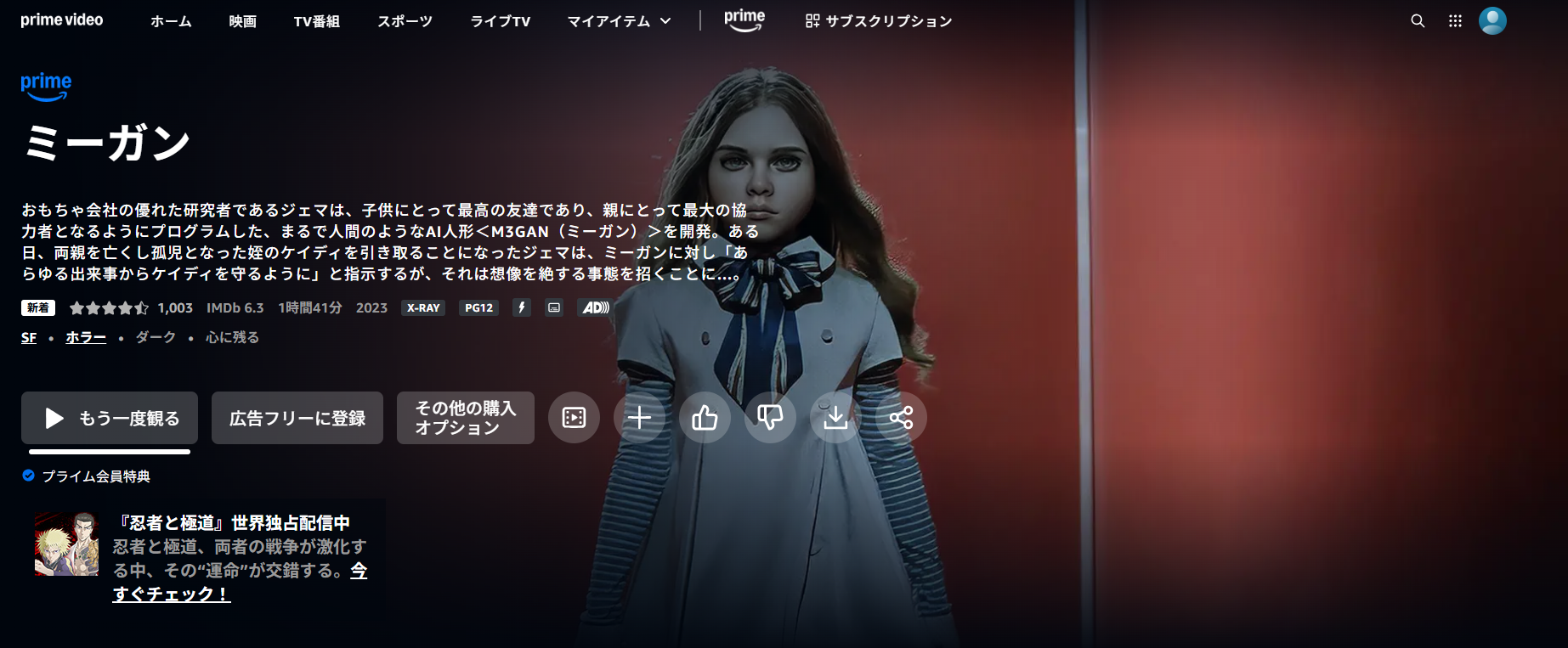 2022年公開の映画だけあって、ミーガンの動き(CG?)はかなりリアルでしたね。しかしミーガンと言えば「ミーガン法」のもとになった被害女児の名前じゃなかったっけ。こんなふうに使っちゃっていいんだろうか。あっちじゃありふれた名前なんだろうか。