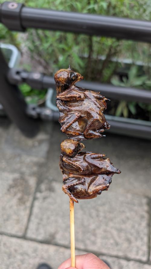別のお店の鹿フランク。 昨今の状況からすれば鹿よりも熊を食うべきでは、と思わなくもないですが、さすがに熊肉は屋台では出ていなかった。