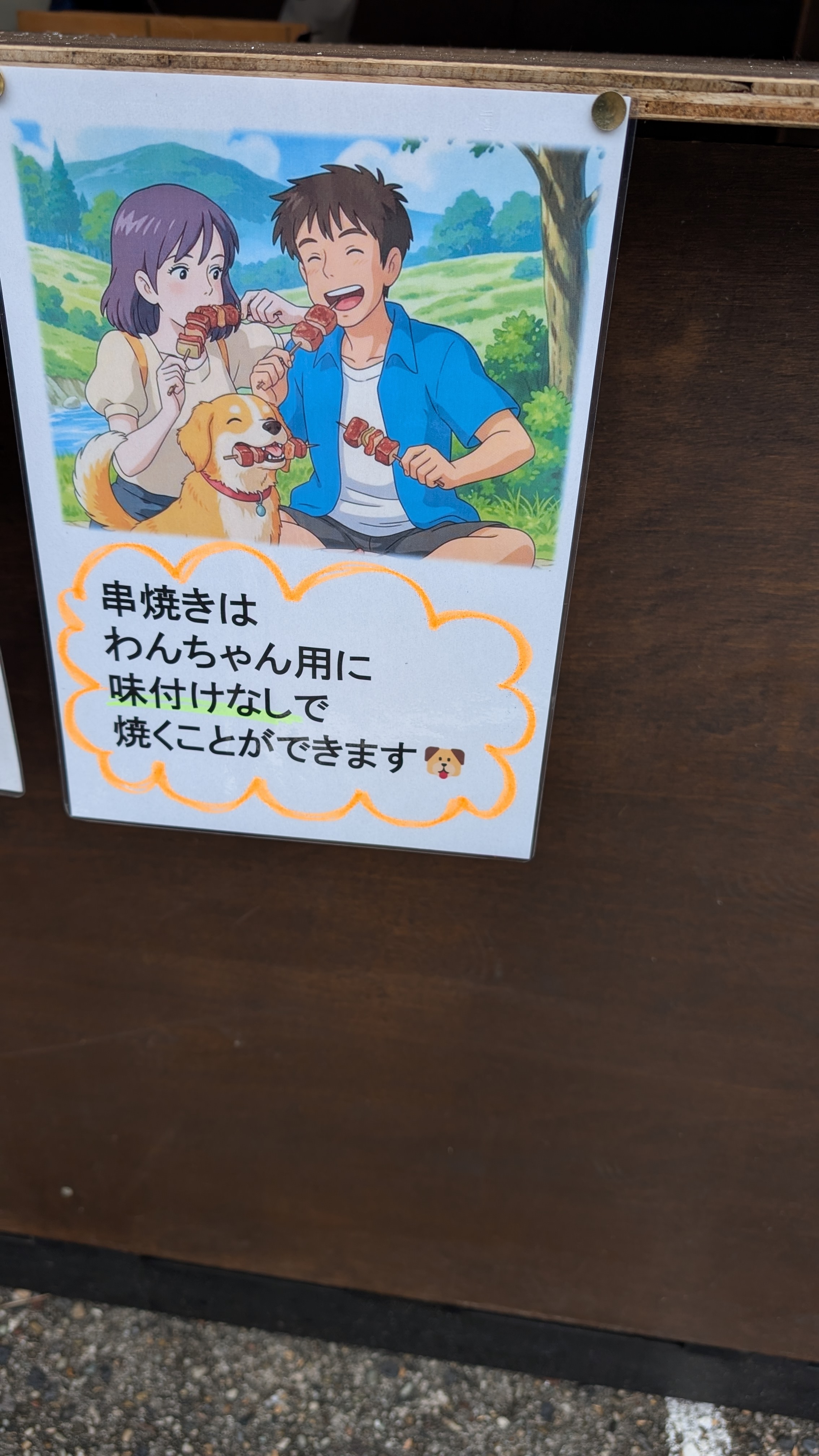 見るからに生成AIで作った張り紙が出ていました。 見るからに生成AIですが、こういうイラストに需要があるのはわかりますし、こんなピンポイントなイラスト描いてもらわないとないだろうし人に頼むとお金がかかるし、そりゃ生成AIで作りたくなりますよねえ。 女性の左手の串が折れ曲がってるとか、ツッコミどころはありますが。