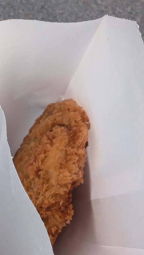 その後「まるごと肉まつり」に行ったのですがどこも行列または売り切れ、座るところもいっぱい、空いてて今のお腹で入りそうなものを選んだら養老ミートの「飛騨牛入りコロッケ」を選ぶことになった。さぞ上等な肉が入っていたのだろうと思いますが、コロッケじゃ肉の含有量が少なすぎて味なんてわからない……