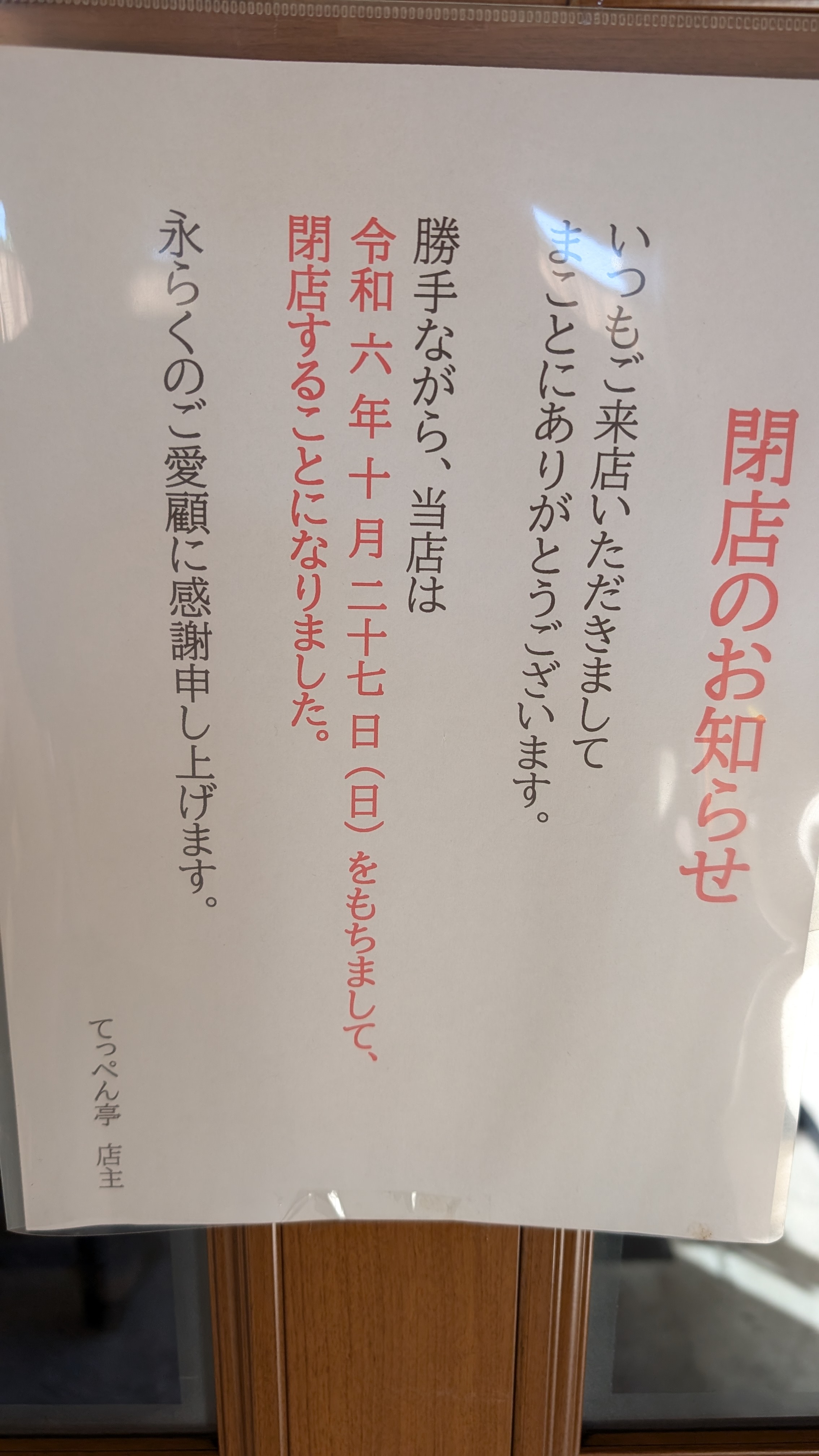 なんというか、無常なものです。いつものお店はいつまでもあるとは限らないんだなあ。