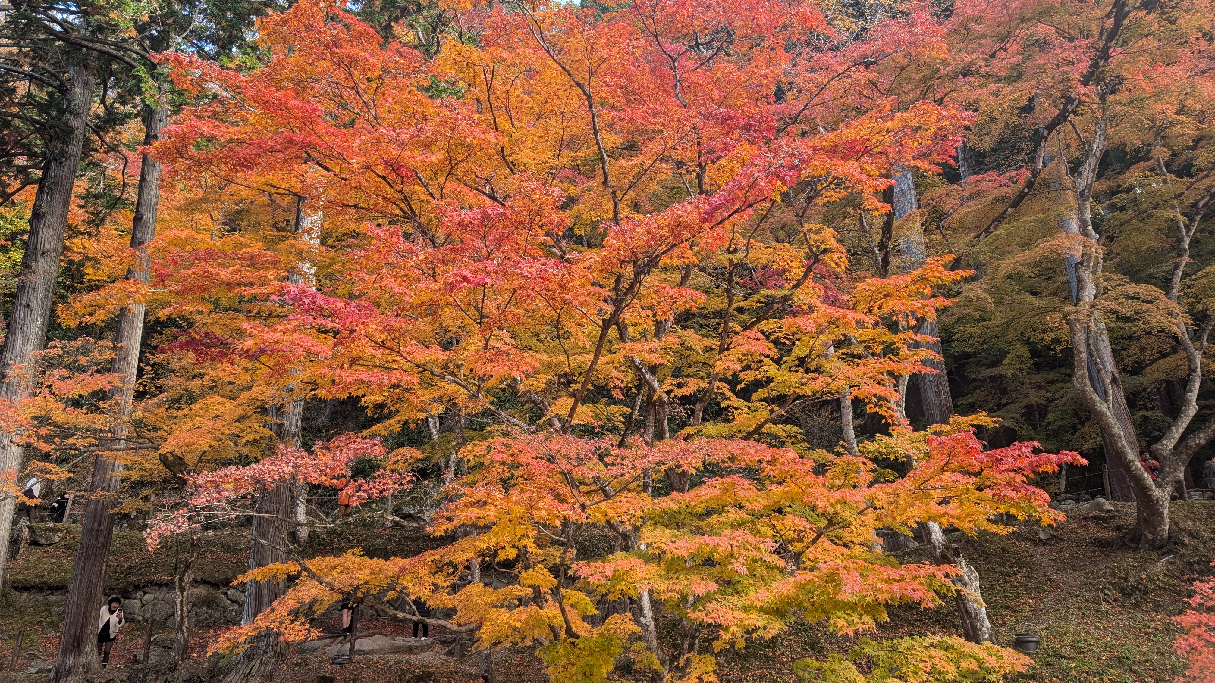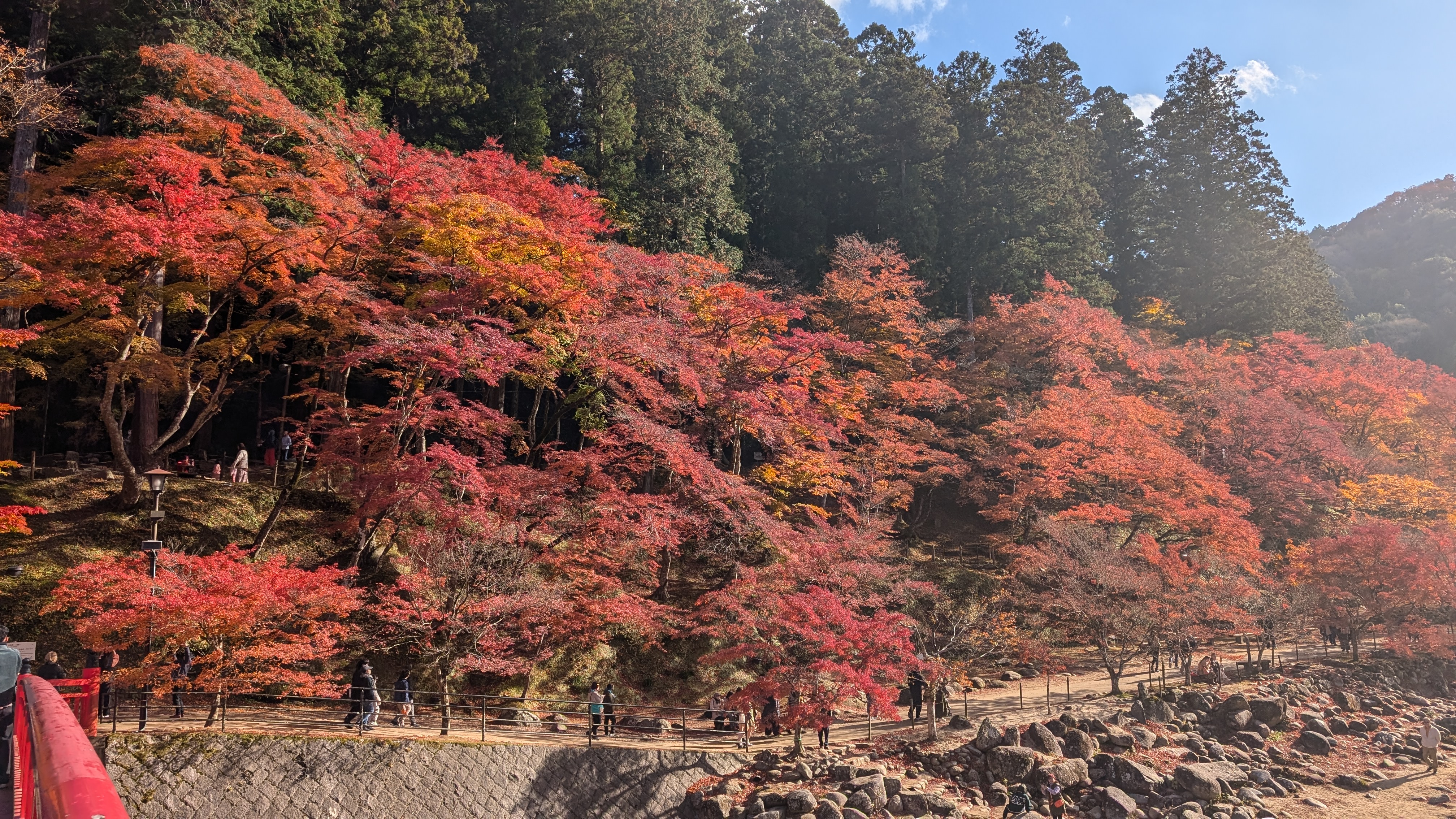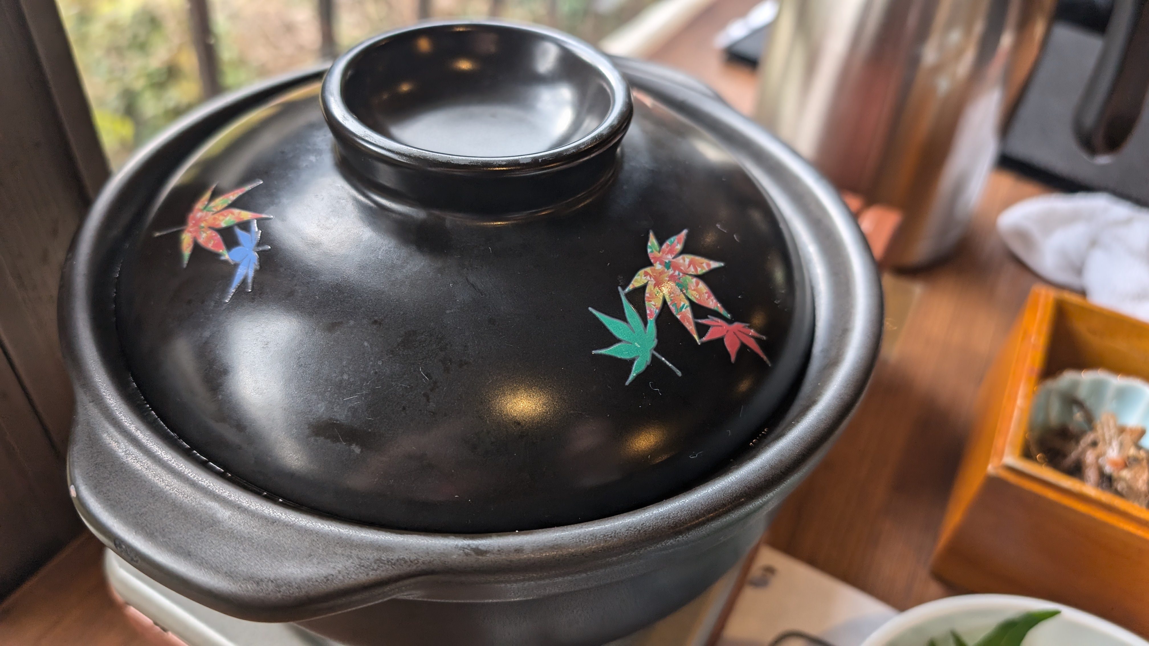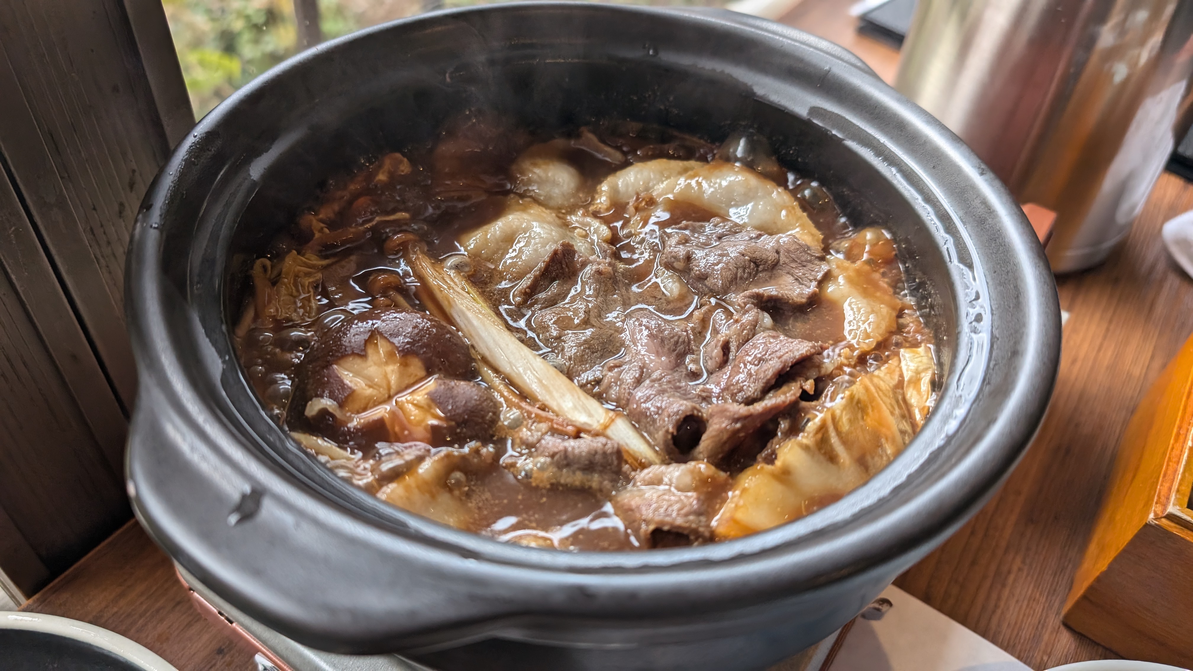 ここに「今日時点では紅葉はまだまだだったので、もう1回行くとして、12月初旬でもよいかも。」と書いたとおり、本日行って来ました。今回の目当ては一の谷の鍋です。鹿鍋にするか猪鍋にするか、と思っていたのですが、結局「時価」の熊鍋にしました。熊鍋は何年か前に一度食べたのですが、久々ですし、めったに食べられるもんじゃないですし、こうしてお金を使うことでハンターさんにちょっとは回るかもしれませんし。