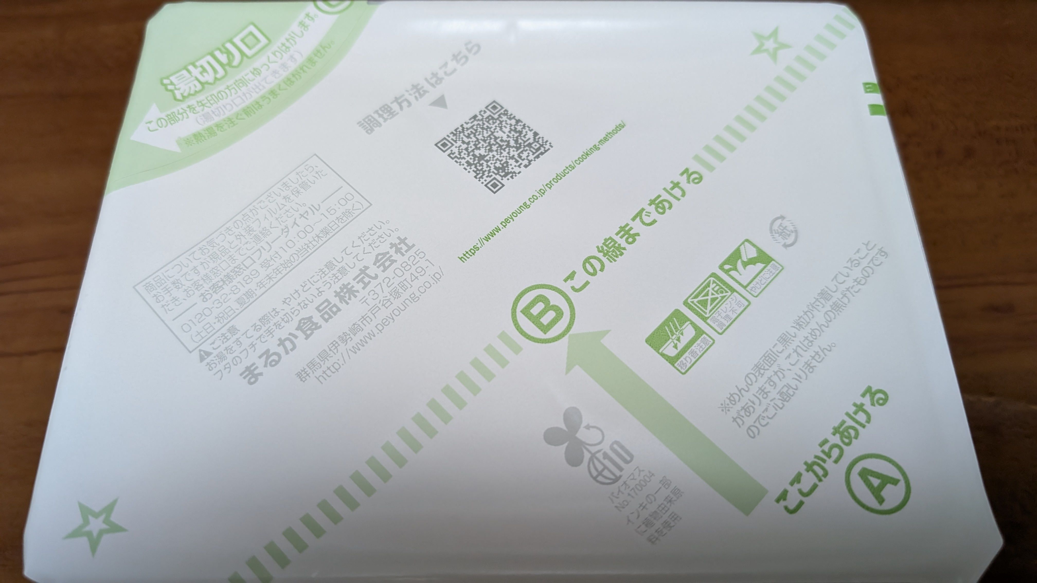 ペヤングソース焼きそばの外装フィルムを破って捨てて、中の内蓋に作り方が書いてあるだろう、と思ったら、「調理方法はこちら」とQRコードだけ印刷されてるわけですよ。