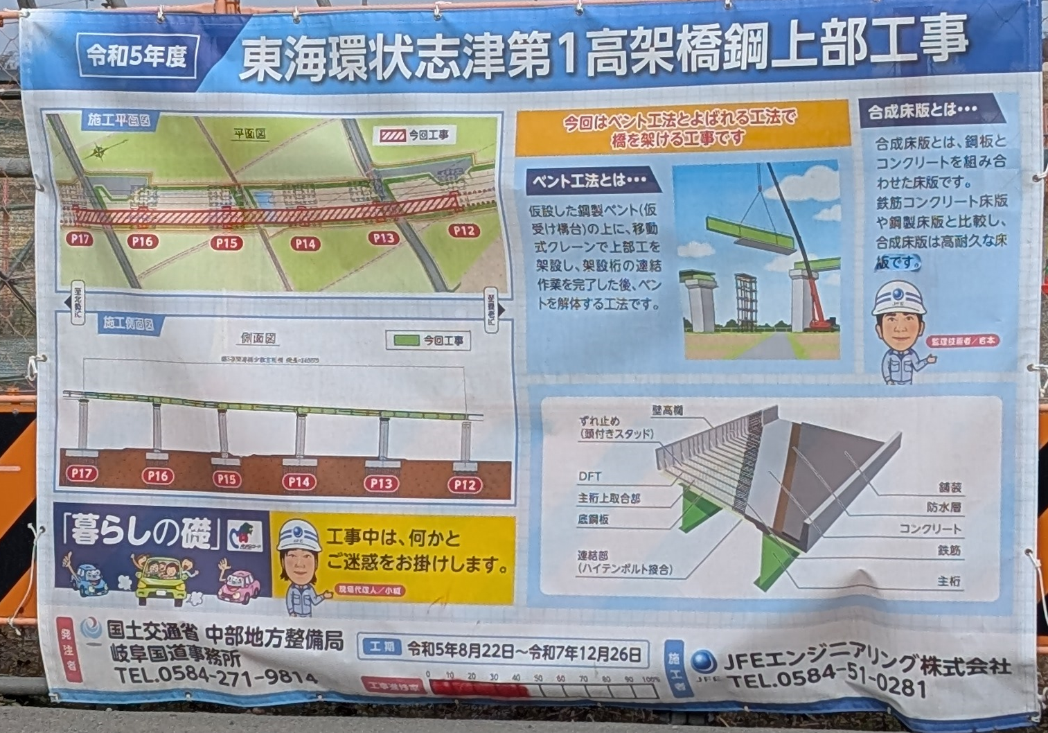 このコースの途中で東海環状自動車道の工事をやっていて、昔はさっぱり進まなかったんですが、最近はちょこちょこ進んでいるようです。