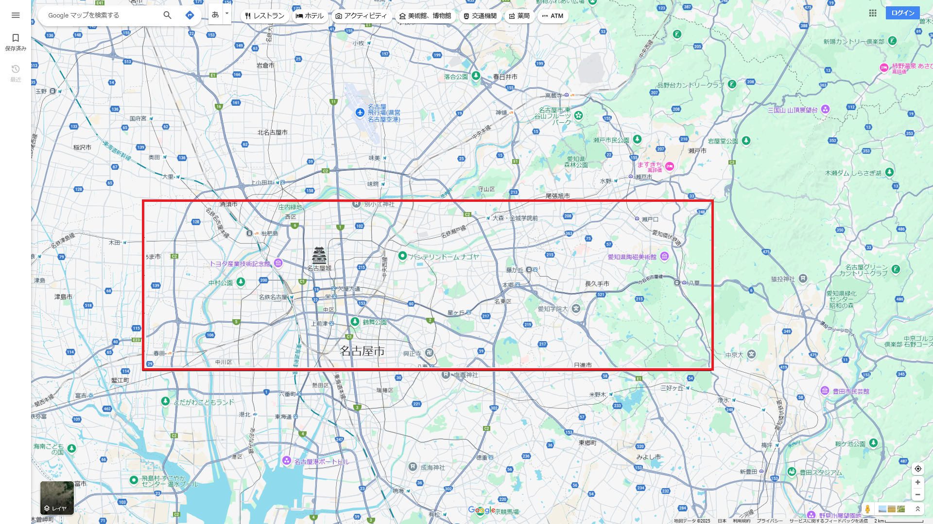 南北方向9km, 東西方向30kmで、名古屋にマッピングしてみました。