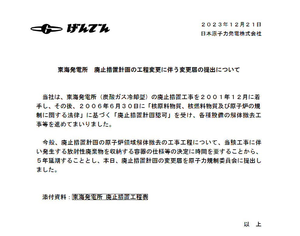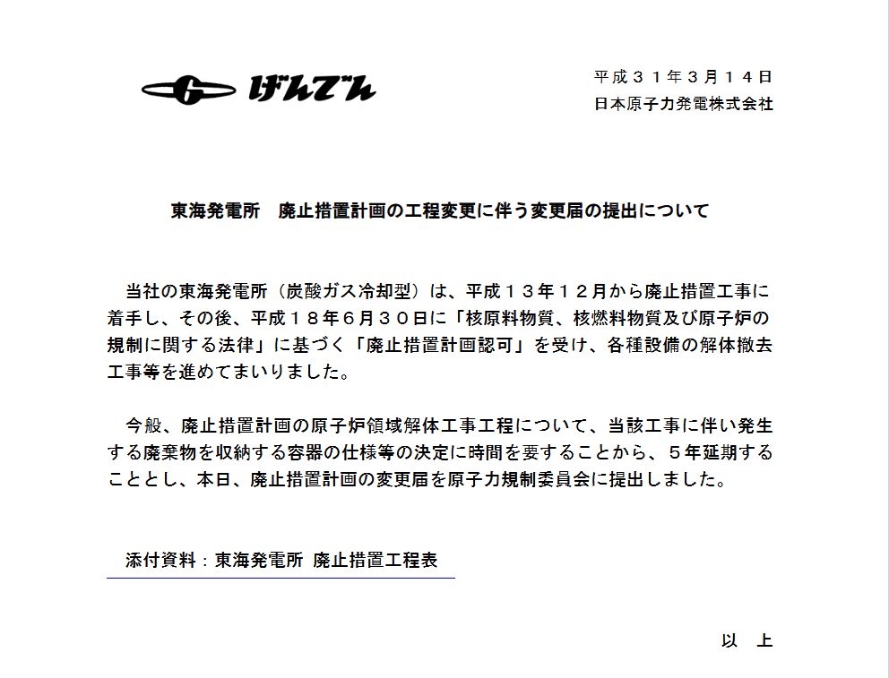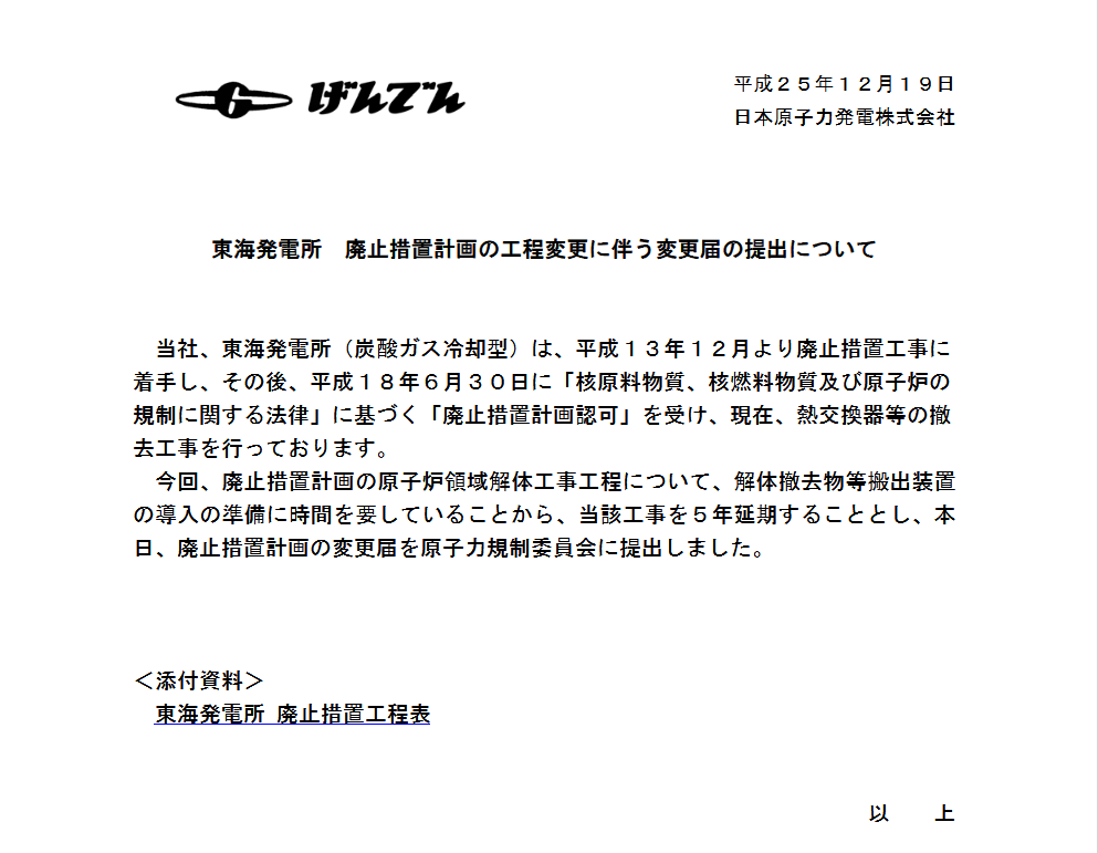 Wikipediaにはここまでしか載ってないのですが、2019年なんてもうとっくに過ぎています。では原子炉解体を始めたのかといえば、2018年のプレスリリースがこれ。また5年延長です。