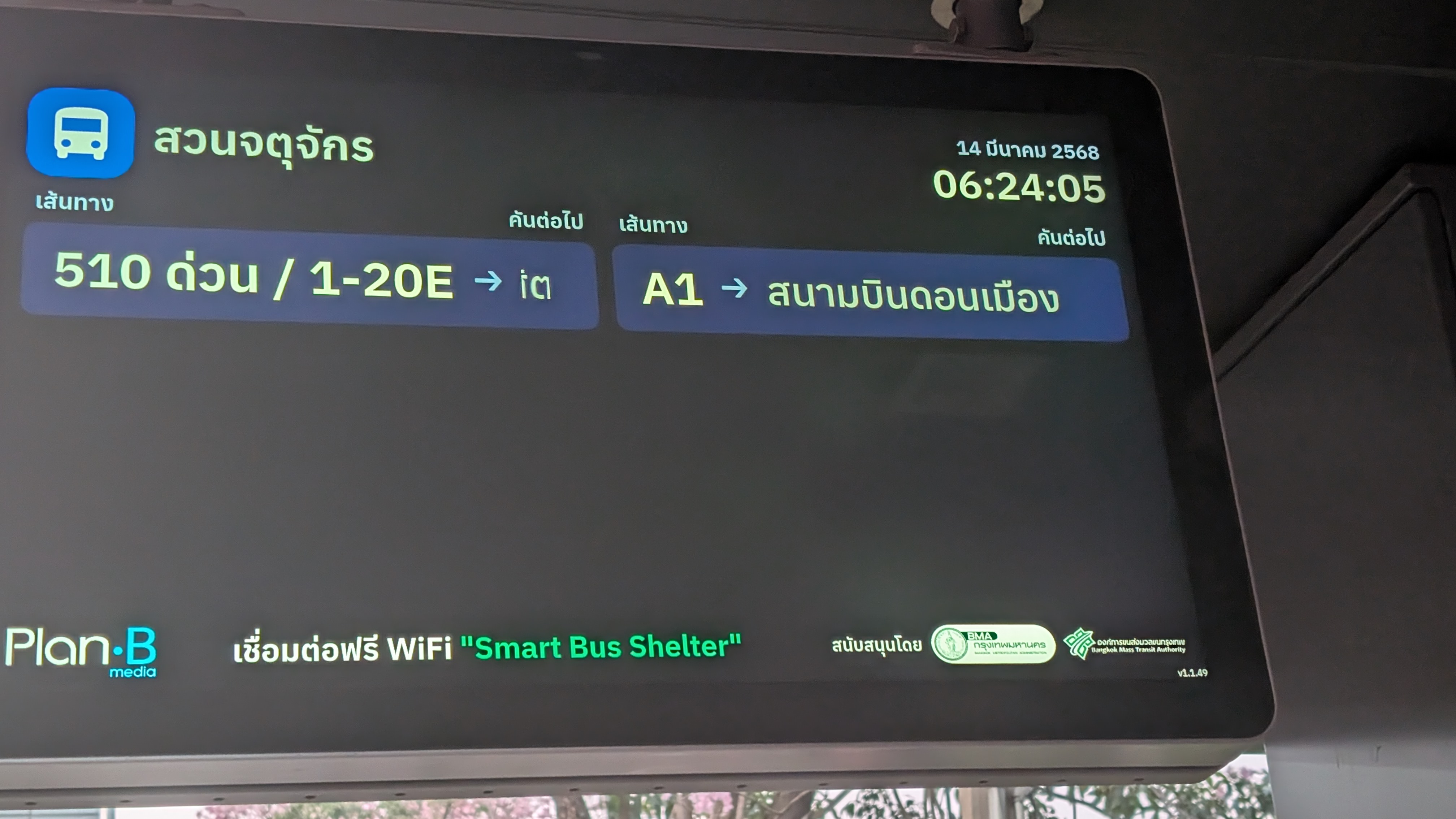 3/14の朝、空港に向かいます。前の晩、夜中に目が覚めてしまった上に再入眠に失敗したのでめちゃくちゃ早くホテルを出て、鉄道でMo Chit駅に向かい、そこからバスです。
