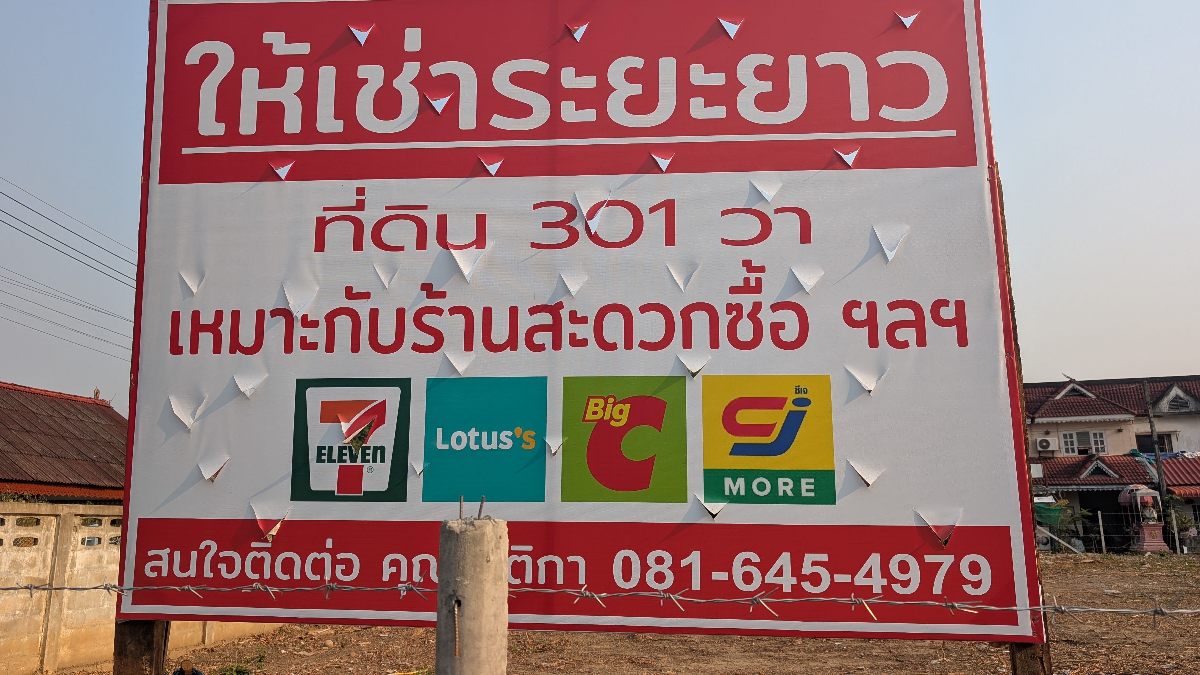 Googleレンズで読んでみると、(コンビニ予定地ではなく)売地のようです。まんなかに建ってたあれは壊すんだろうか。