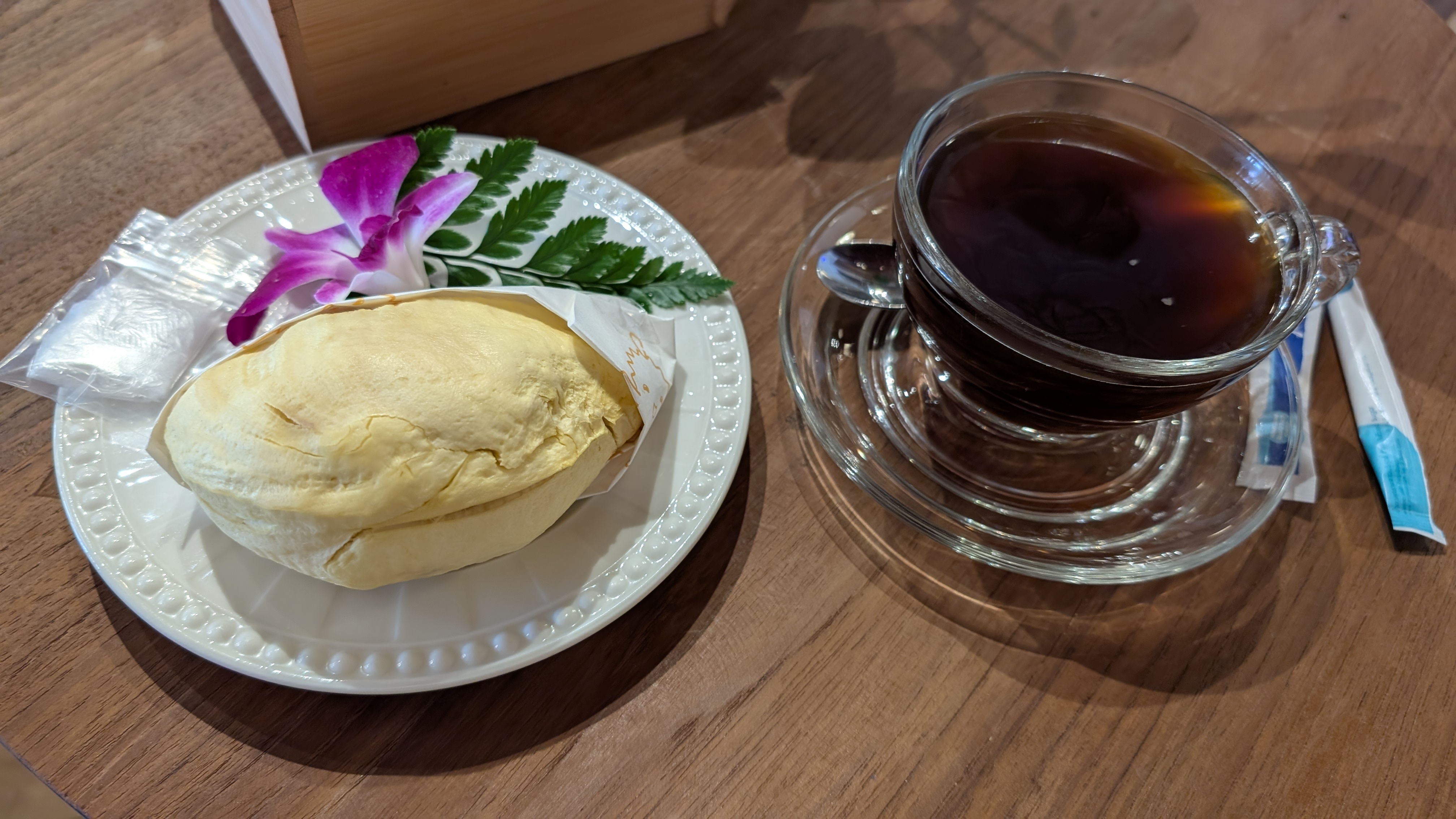 左のこれ、何だろうと思いながら頼んだのですが、あとで画像検索したところによると、ドリアンだったらしい。