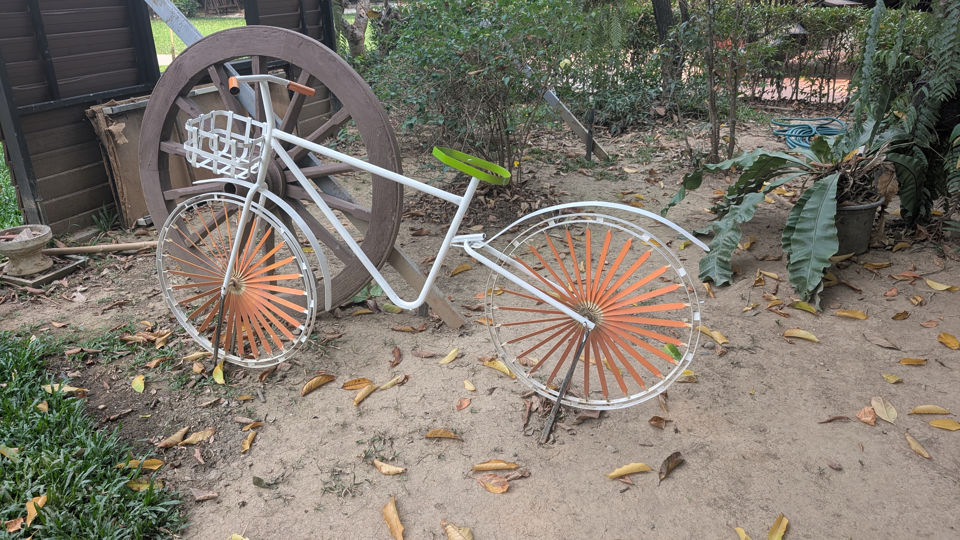 変わったスポークの自転車だな、と思ったら、オブジェだった。