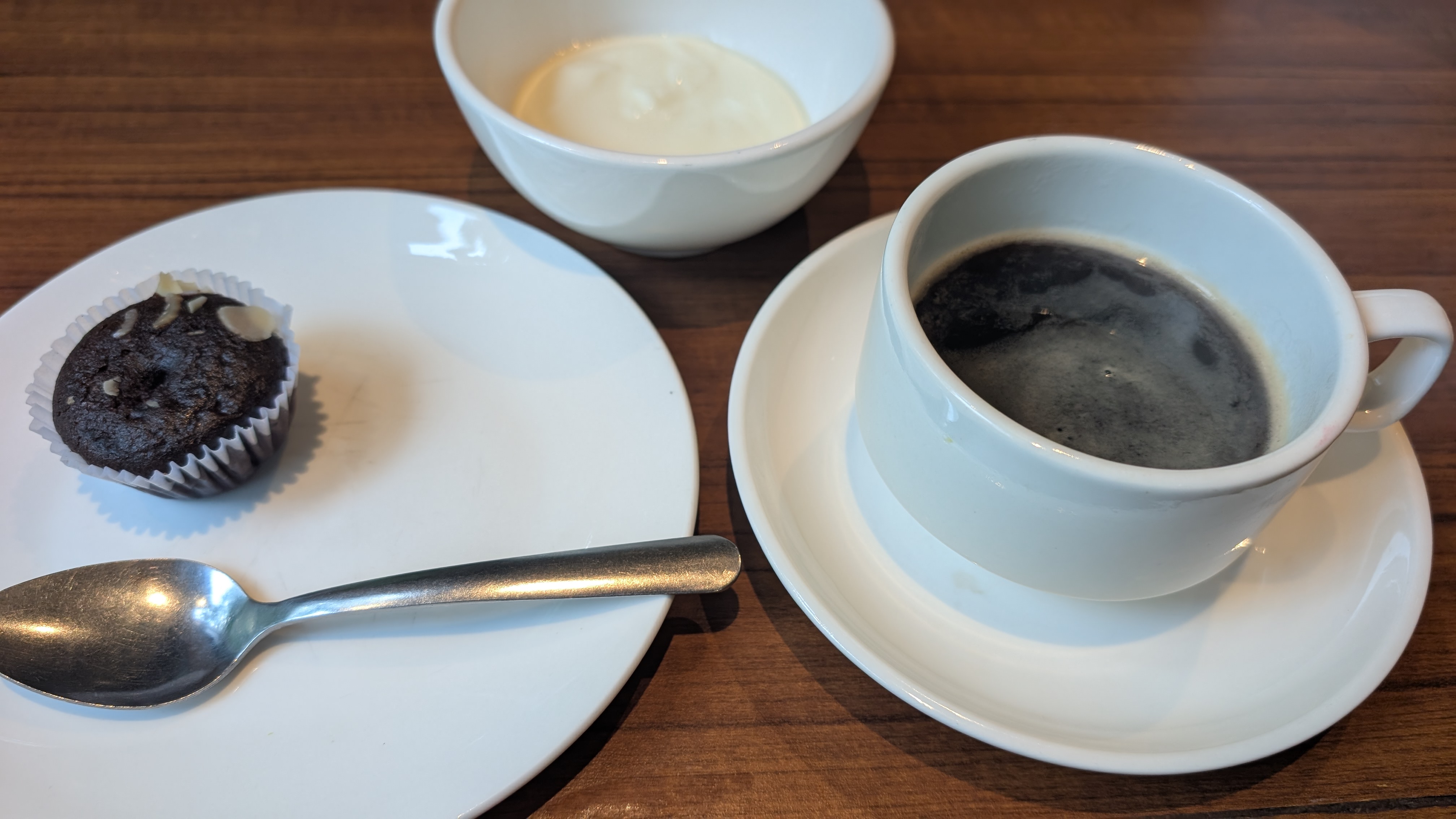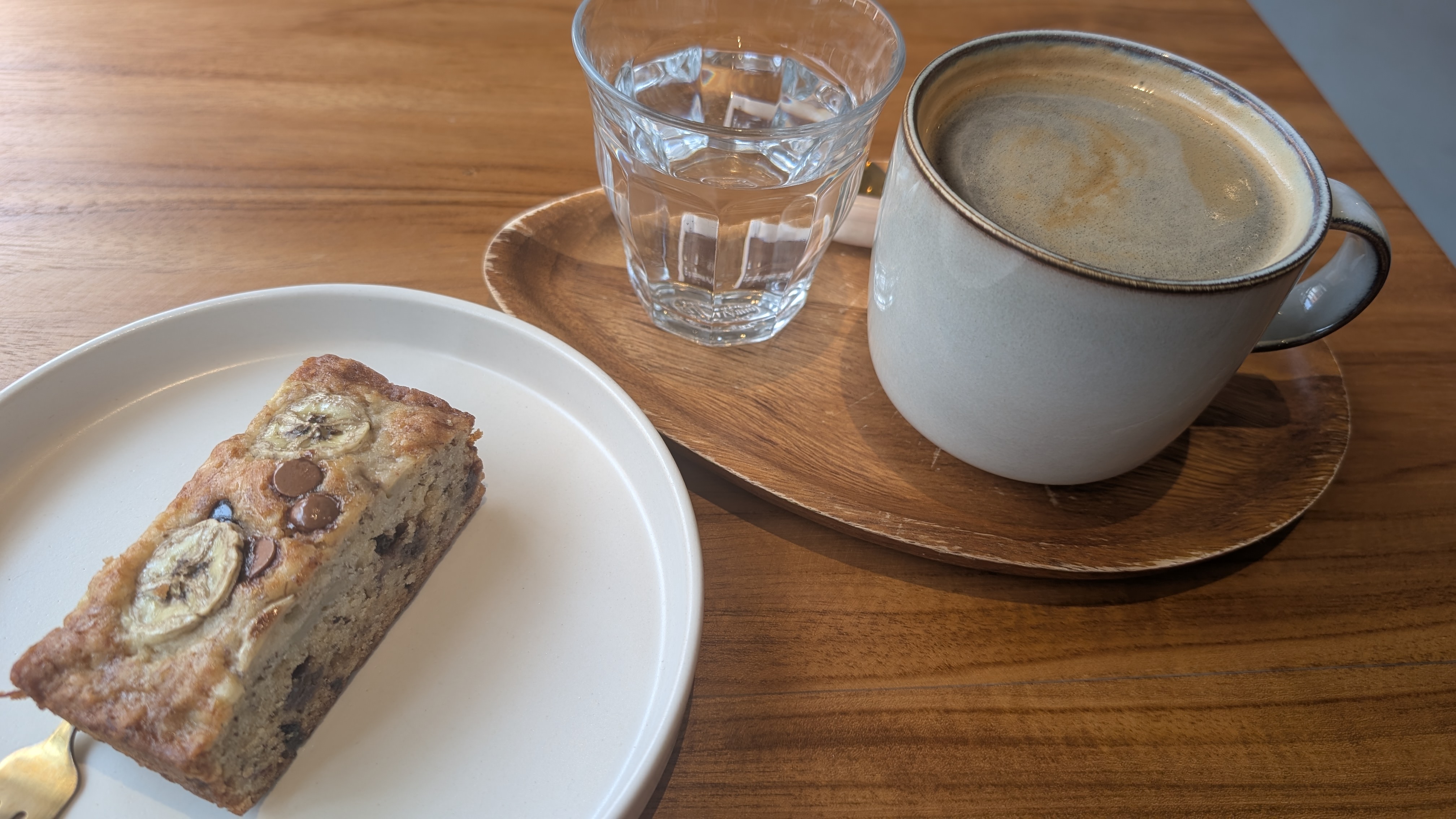 ホテルのそばまで来たのですが、時間が早すぎてチェックインできず、20分待てと言われたので前にも来たお店でバナナケーキ。