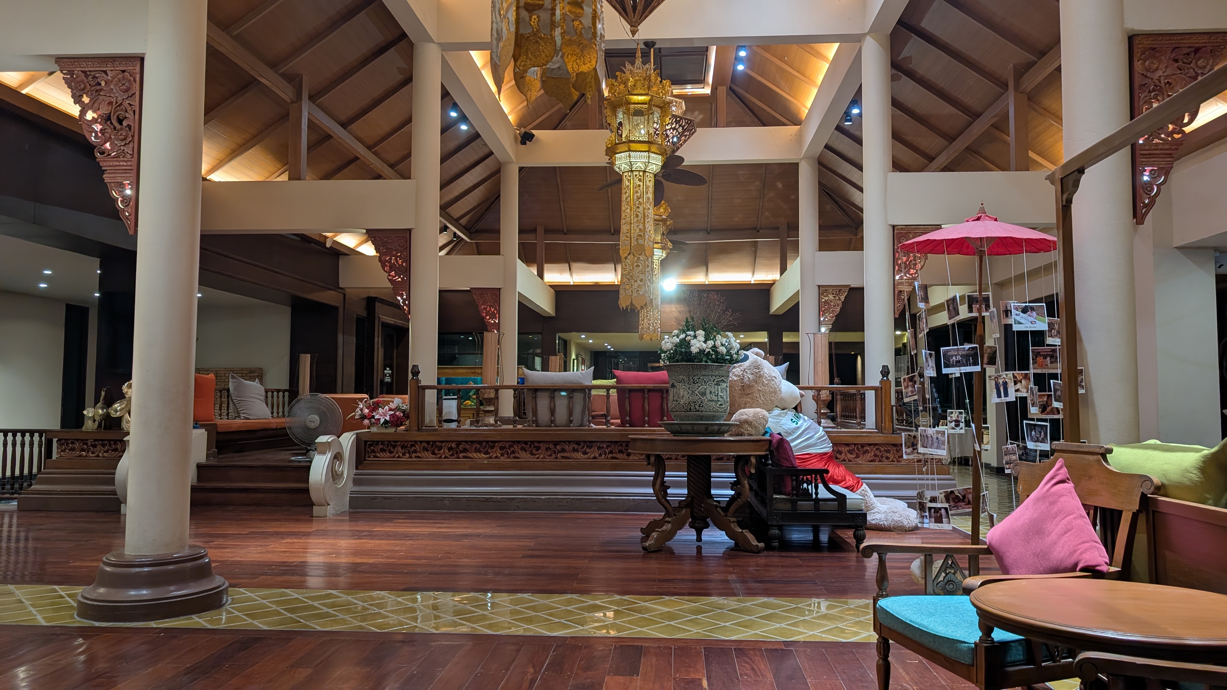 翌朝。早朝に空港に移動します。このホテルのロビーも見納めです。