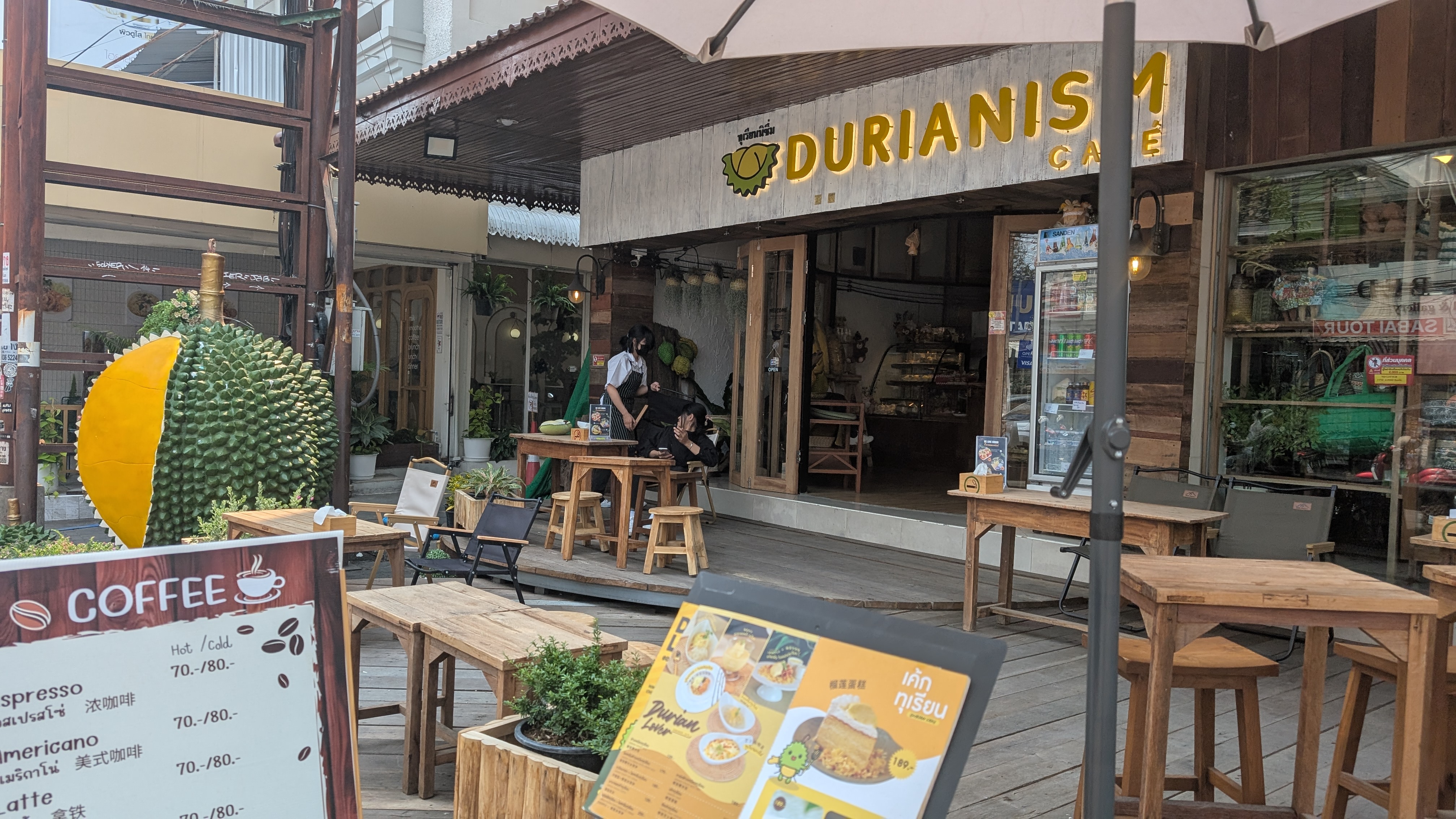 ところで先日ドリアンを食べた喫茶店、あらためて見てみたら外観からして完璧にドリアンのお店だった。これで気づかないのどうかしているよ。