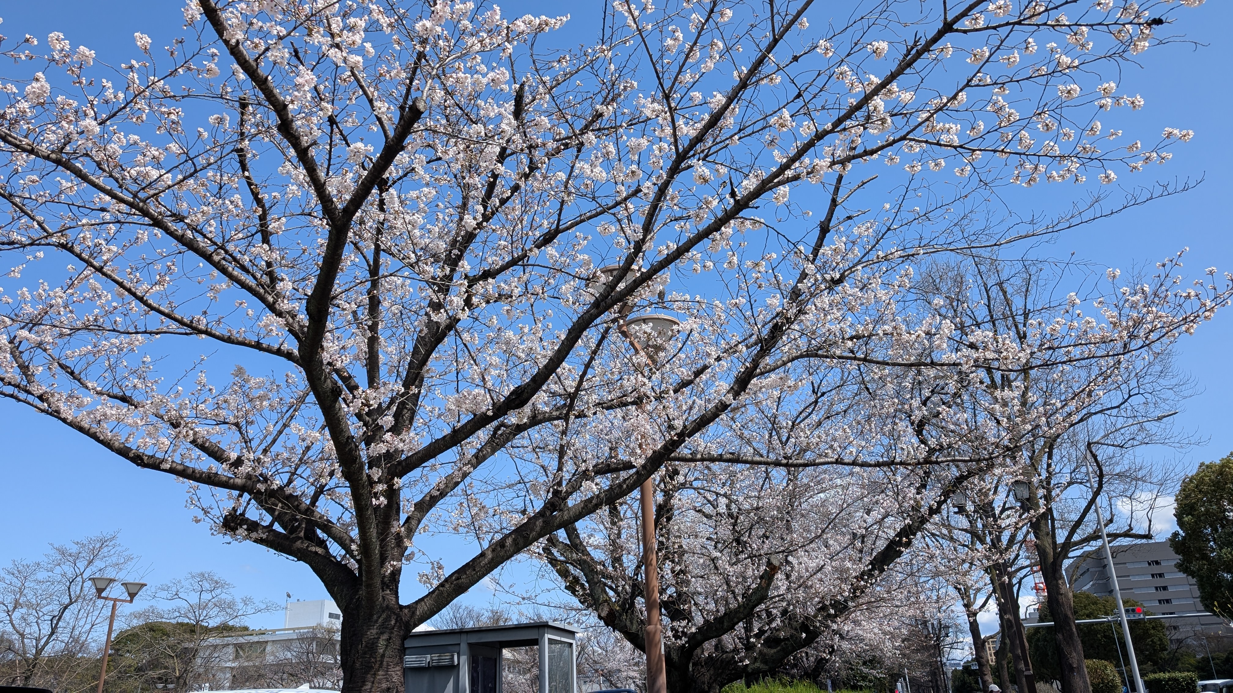 今年は、満開にはまだちょっと早いですね。5分咲きとか6分咲きとかだと思いますが、次の週末だと満開を超えてそう。