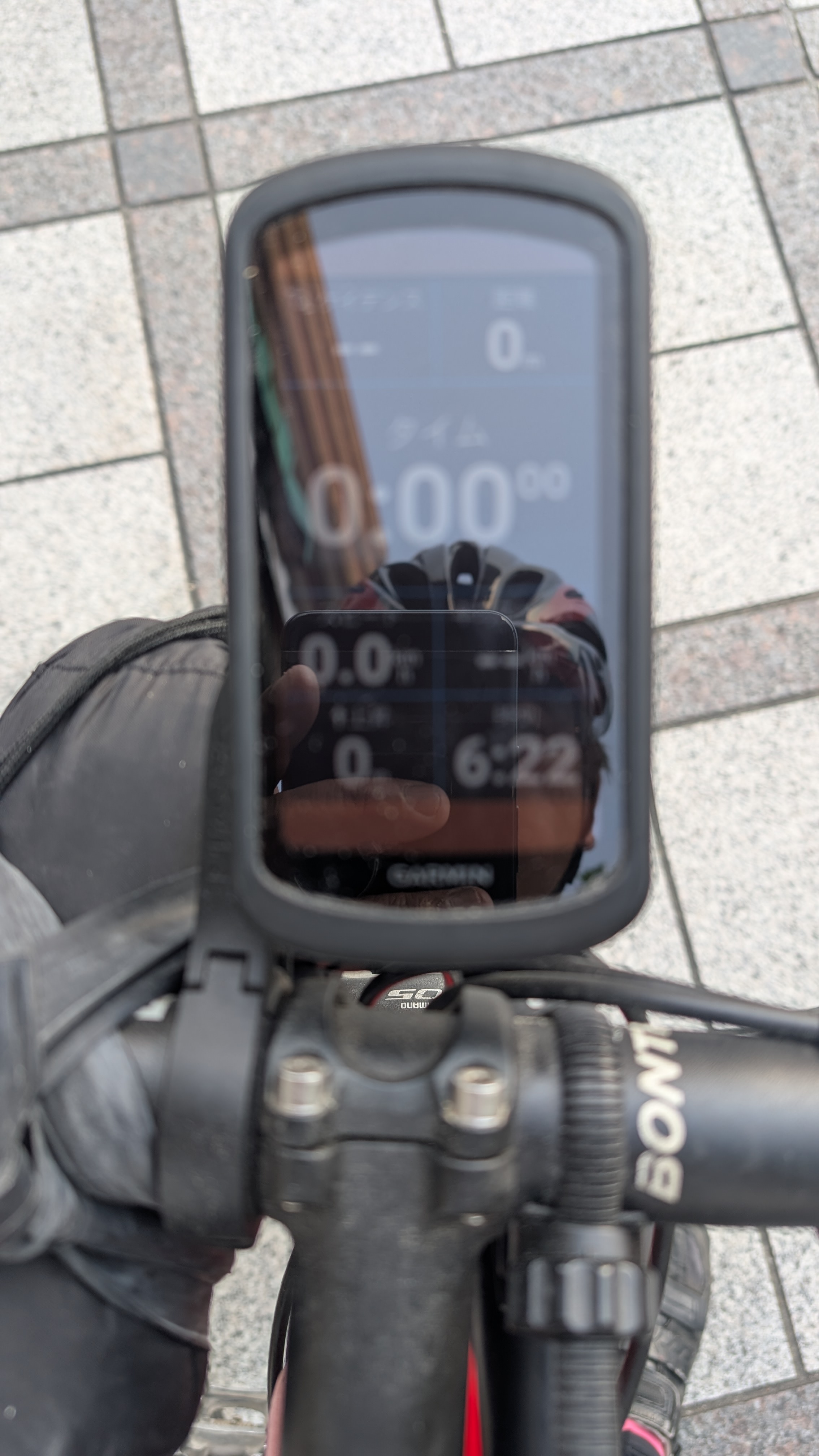 ホテルから京都駅の自転車置き場まで歩いて、自転車を出して、京都駅の前を押して歩いて、実際に乗って走り始める時点では06:22になってました。