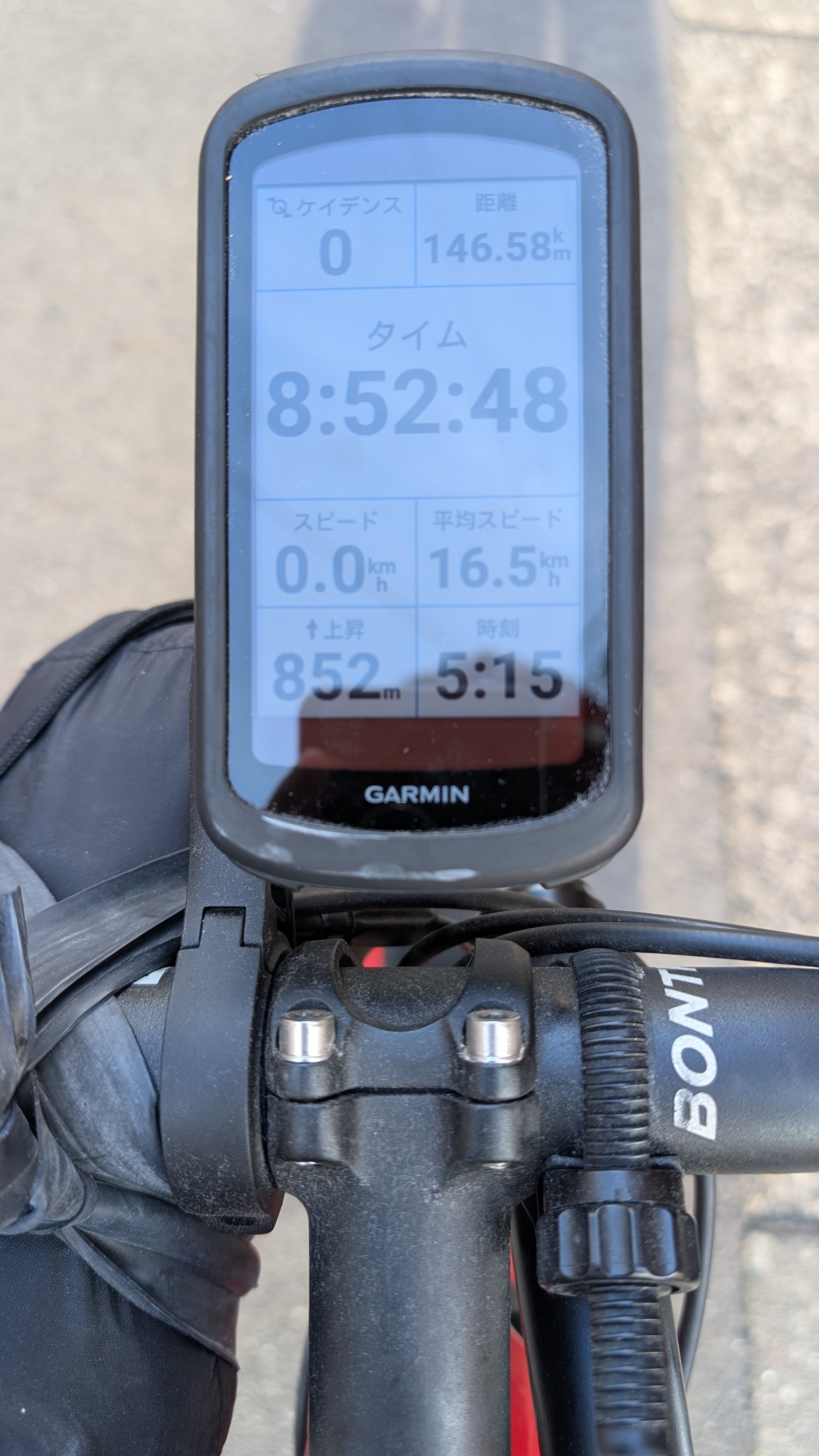 行きは150kmくらい走ったはずで、帰りが146kmくらいなのは、カフェを出てからしばらくサイクルコンピュータの電源入れるのを忘れていたためかな。でもそんなに走ったかな。