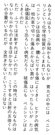 『今日、一人当たりに処方されるペニシリンの一日の服用量を生産するには、二〇〇〇リットルものカビ汁を加工しなければならない。』
