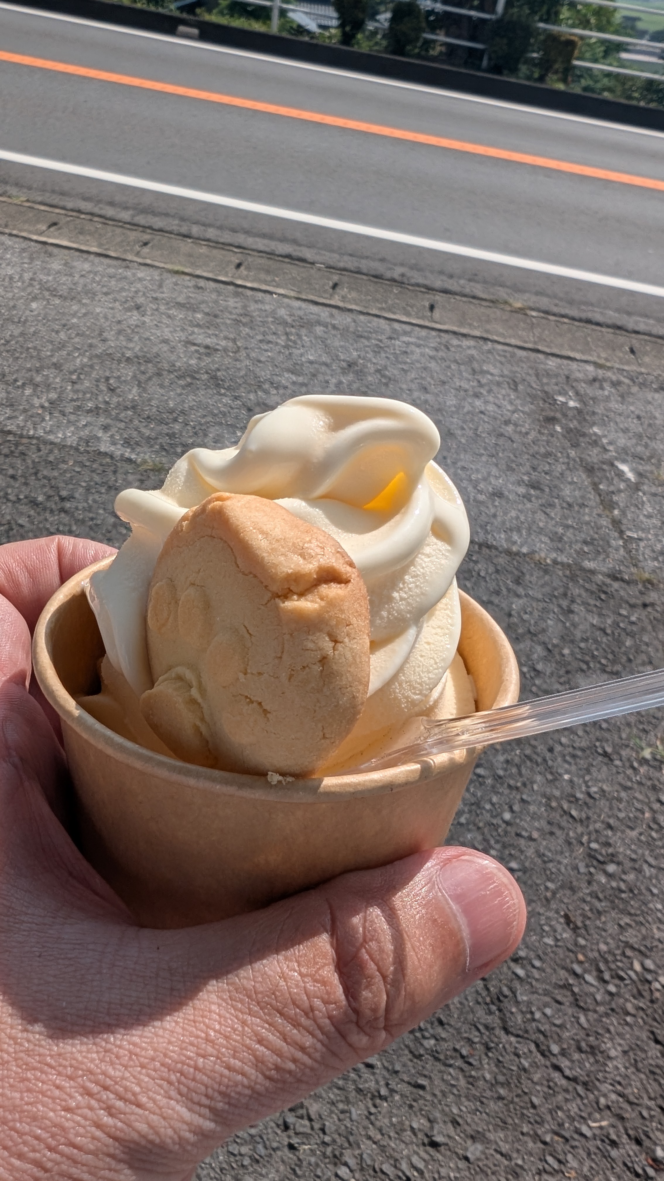 昔はカフェだったのですが今はパン屋さんになっていて、中では食べられないので、外のベンチでソフトクリーム。暑い時期でなければ、パンとホットコーヒーにしたいところですが、さすがにこの暑さの中ホットコーヒーを飲む気にはなれなかった。