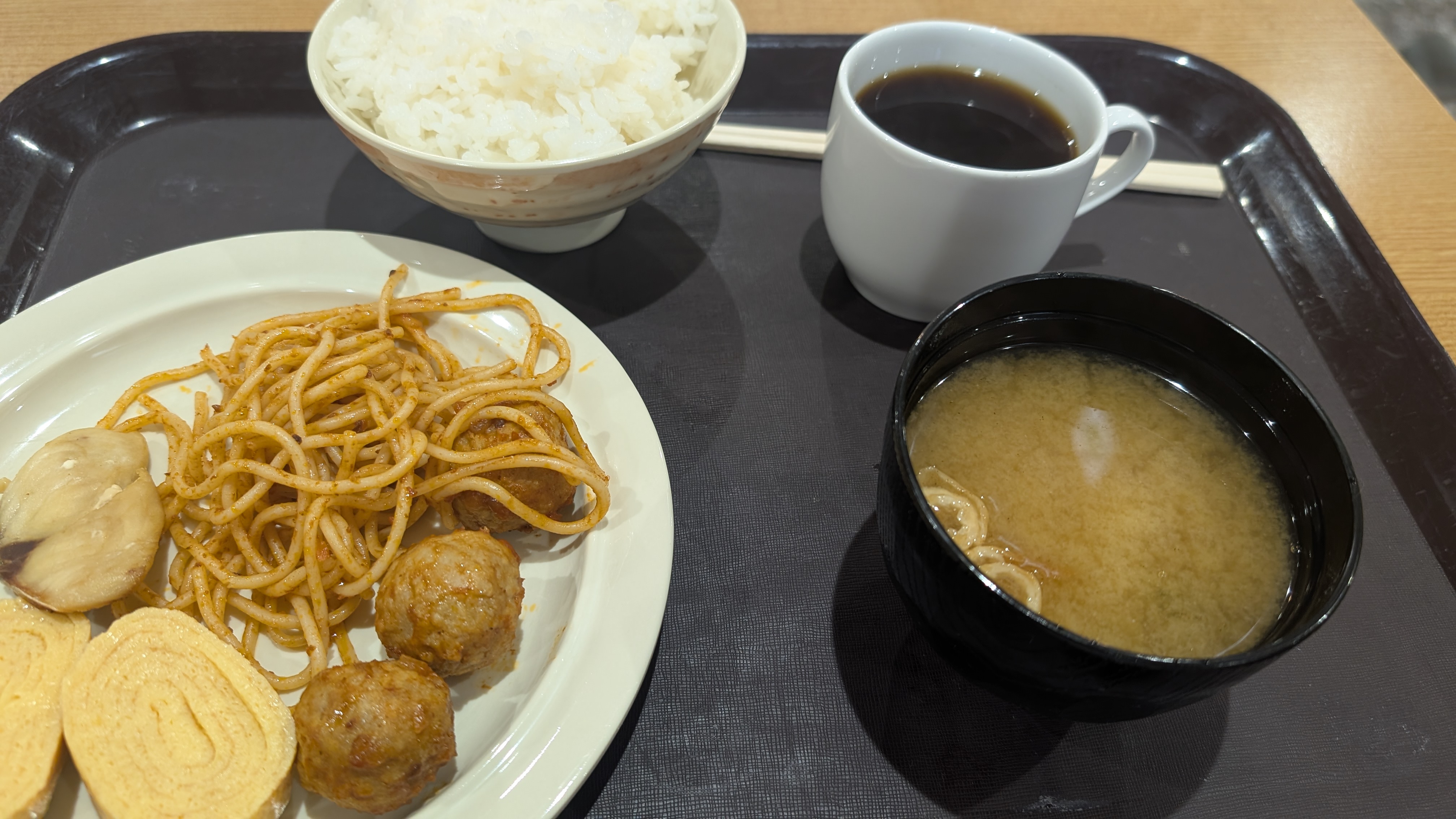 翌朝。寝不足だったので爆睡した結果ホテルのバイキングの朝食の時間ぎりぎりになってしまって、たいしたものが残ってなかった。