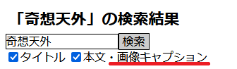 このブログのプログラムの検索機能で、画像のキャプションも検索できるようにして。